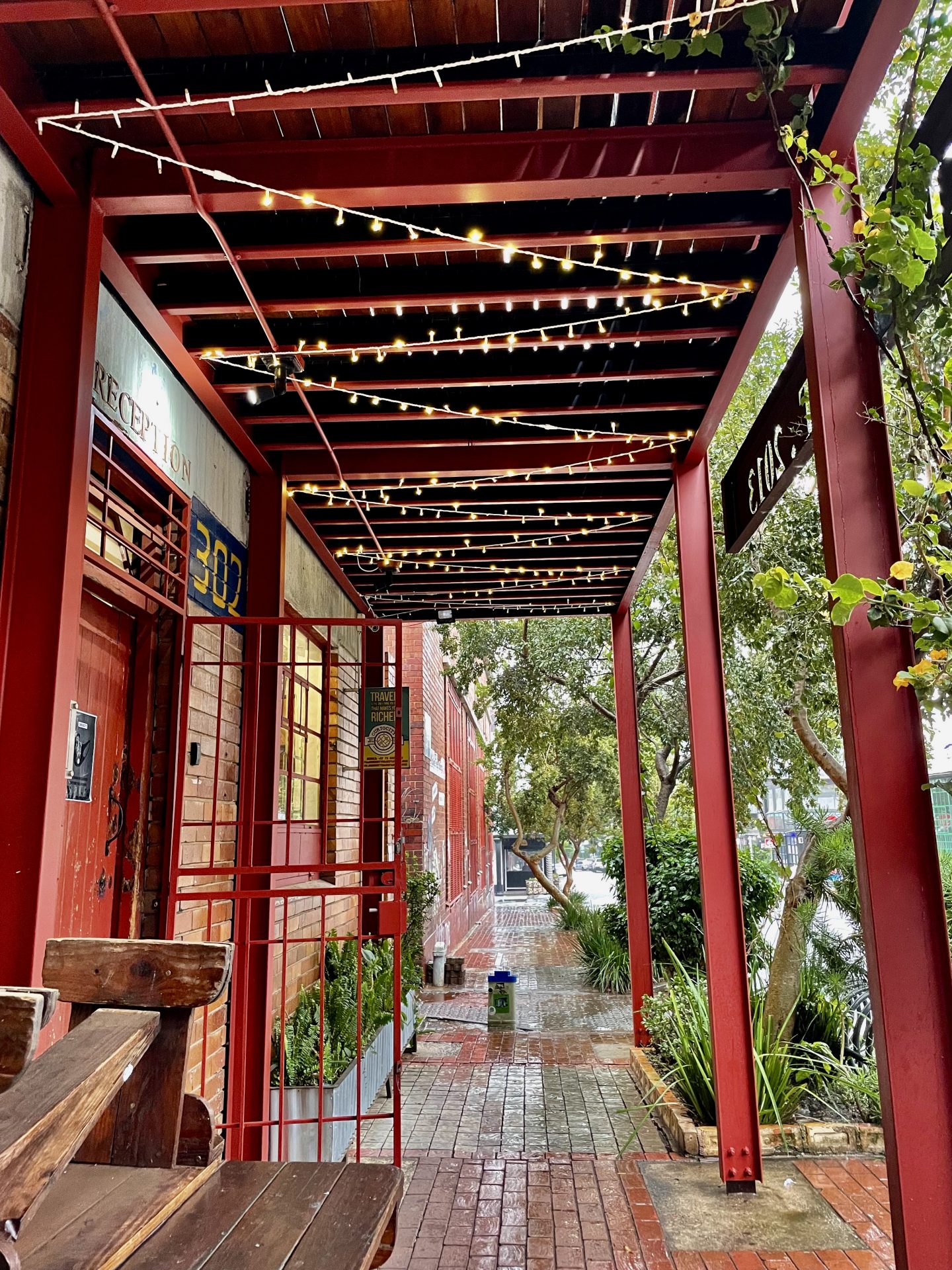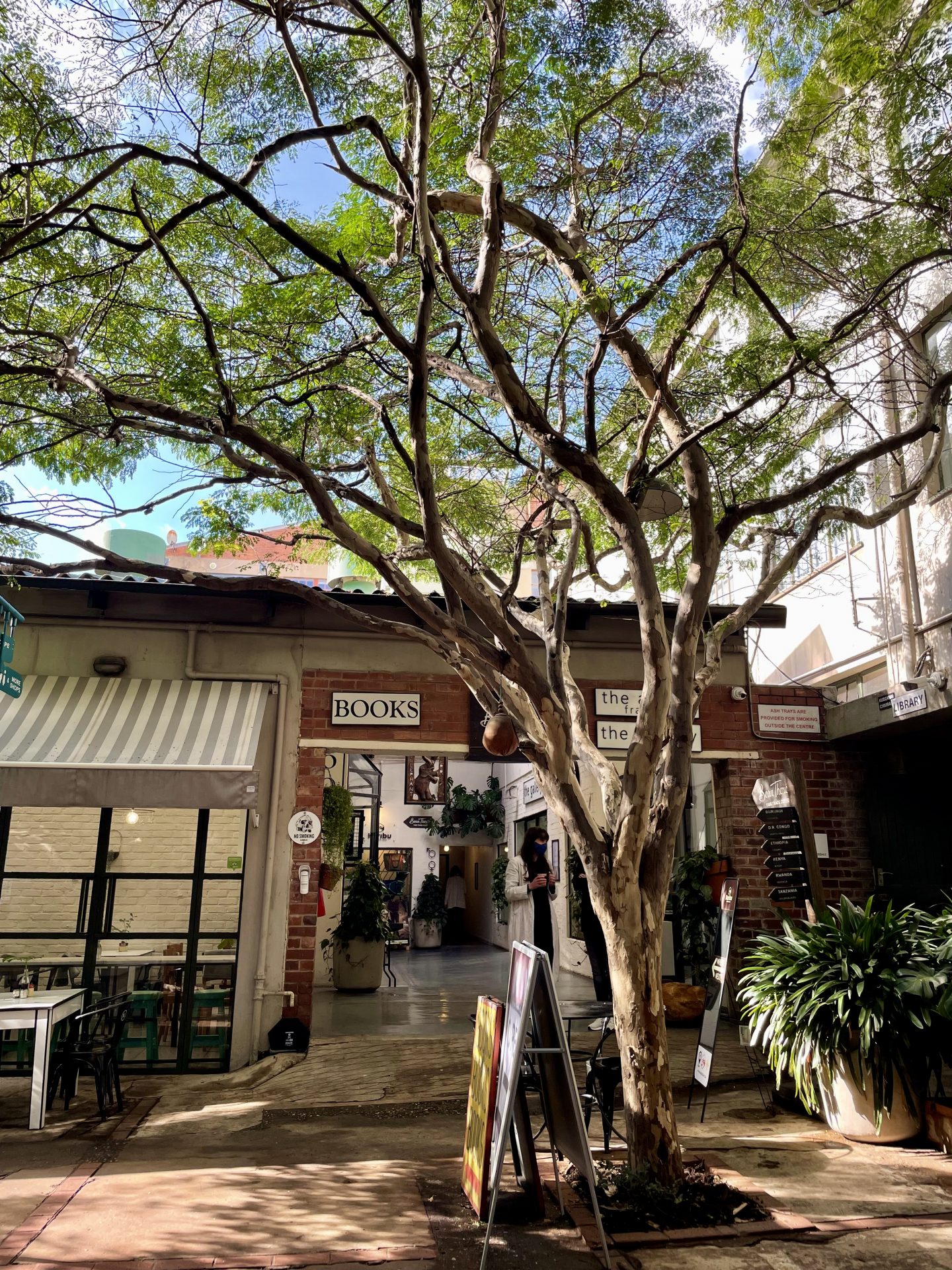 Débout là-dedans ! Alors ? ça va mieux ? Je me réveille malade, Fouedix qui a vécu, je pense une des pires nuits de sa vie sur le canapé, Rastagatha ce n’était pas brillant non plus et il pleut, toujours. Que faire, boire un thé pour sûr, puis on se rappelle de ce qui peut nous remonter le moral face à ces débuts difficiles: « Meilleurs brunchs à Johannesburg », voilà par quoi on va commencer par taper sur notre téléphone. Cette petite recherche nous amène au SALVATION CAFE, en banlieue nord. Dans une galerie un peu bobo, avec des magasins d’arts, de vin et de livres.